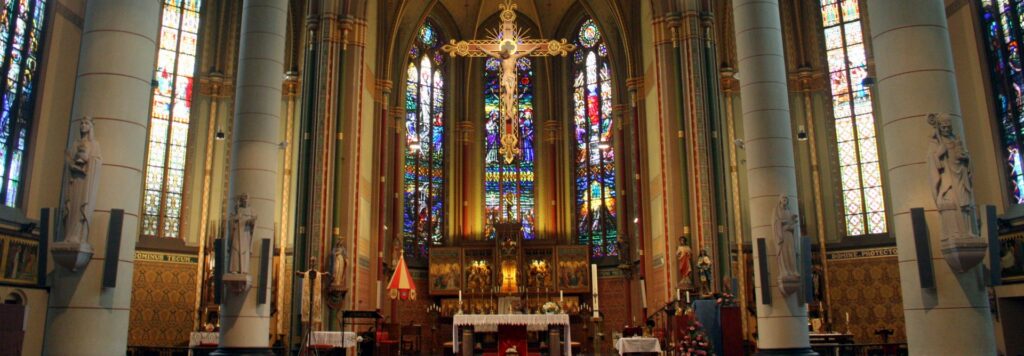 📹 Zondagse vieringen (11:00 u) worden online uitgezonden. Er is kinderwoorddienst en crèche beschikbaar, en kinderen kunnen misdienaar zijn of deelnemen aan de koorschool.